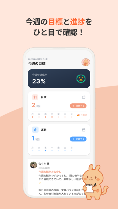 【ダイエットや運動、一人で頑張っていませんか?】 「痩せたいけど、厳しい食事制限は続かない」 「ジムに通い始めたけど、いつの間にか行かなくなった」 「アプリで記録しても、機械的な反応だけで孤独を感じる」 そんな悩みを持つあなたへ。 ハビタスは、AIや機械任せではなく、「人の温かさ」であなたの健康習慣をサポートする新しいアプリです。 ※本アプリのご利用には、有料プランへの登録が必要です。 ■ ハビタスの3つの特徴 1. 専属コーチが優しく「伴走」します ハビタスのコーチは、あなたを厳しく管理・指導する「先生」ではありません。あなたの生活や気持ちに寄り添い、一緒にゴールを目指す「パートナー」です。 「今日はサボってしまった…」そんな日も、コーチはあなたを責めることはありません。「また明日からどうするか」を一緒に考え、小さな一歩を応援します。 2. 同じ目標を持つ仲間がいるコミュニティ 一人ではつらいことも、仲間がいれば頑張れる。ハビタスには、健康やダイエットを目指す仲間が集まるコミュニティがあります。 「自炊できた!」「少し歩いた!」そんな日々の小さな達成をシェアし合い、励まし合うことで、自然とモチベーションが続きます。 3. 目標は「自炊」と「運動」の回数だけ。カロリー計算は不要 細かいカロリー計算や、g単位の栄養管理は必要ありません。 ハビタスが大切にしているのは、「自炊したか」「運動したか」というシンプルな行動の積み重ね。独自のメソッドに基づき、無理なく一生続けられる、健やかな習慣を身につけることを目指します。 ■ こんな方におすすめ ・AIのアドバイスだけでは物足りない、寂しいと感じる方 ・パーソナルジムは高すぎて手が出ない方 ・短期的な減量よりも、リバウンドしない生活習慣を身につけたい方 ・誰かに見守られている「程よい緊張感」と「安心感」が欲しい方 ■ プランについて(アプリ内課金) ハビタスでは、ユーザーの皆様に手厚いサポートを提供するため、以下のサブスクリプション(月額課金)プランをご用意しています。 ・コミュニティプラン:月額300円(税抜)〜。仲間との交流で習慣化を目指すリーズナブルなプラン。 ・コーチングプラン:月額5,980円(税抜)〜。専属コーチがつき、手厚いサポートを受けられるプラン。 ※価格は契約期間により異なります。 ■ 私たちの想い 「健康になる=我慢」ではありません。 私たちは、人と人がつながり、支え合うことで、誰もが自律的に健康であり続けられる世界を目指しています。 あなたの「変わりたい」という気持ちを、ハビタスは全力で応援します。 さあ、ハビタスと一緒に、一生モノの健康習慣をはじめましょう。 ■利用規約とプライバシーポリシー https://habitasu.com/terms https://habitasu.com/privacy ■特定商取引法に基づく表示 https://habitasu.com/tokusho ■カスタマーサポート メール:[email protected] ご質問・ご要望など、お気軽にご連絡ください。
