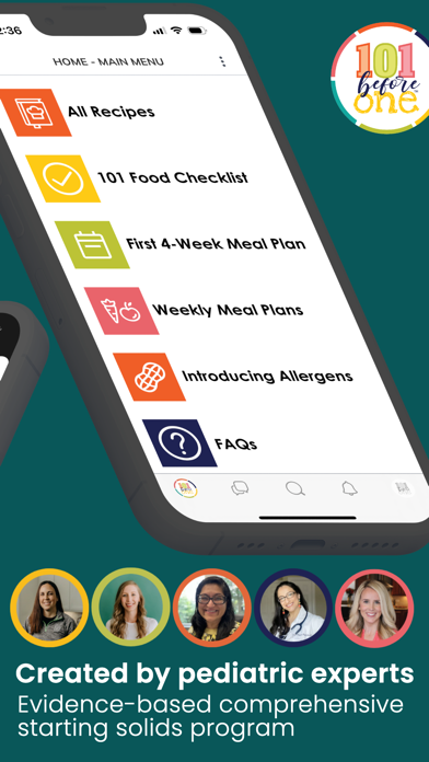 Paid Membership to 101 before one required to use our app. Introduce 101 foods through baby-led weaning & family-style meals. Welcome to 101 before one! We are a team of pediatric experts here to help parents introduce solids to their baby through our signature Family Meals from the Start® program, loved by over 25,000+ families since 2021. With your paid 101 before one lifetime membership, you will: -Gain the confidence you need to start and follow baby-led weaning from 6-12 months -Explore 101 foods with your baby before they turn one -Cook & serve family-style meals and choose from over 300+ recipes and meal ideas -Introduce the Top 9 allergens to your baby both early and often with real food -Get organized with our Weekly Meal Plans & Shopping Lists -Start out on the right foot with our First 4-Week Meal Plan -Feel supported with our resources, FAQs, and chat messages -Join a community of thousands of like-minded parents who are also following BLW “We love the 101 before one program because the recipes are so good to feed everybody in the family! It's helped me make delicious food that is appropriate for baby. Plus I love keeping track of the different foods that baby has tried!” “I love how easy it is to follow and that it's not overwhelming. I've learned so much in just the two weeks I've been using it, and it makes me excited about our solids journey. Our baby is loving meal time!” “I absolutely love having started my baby's solids journey with 101beforeone. She has had such a variety of meals since she was 6 months old and even into her toddler hood, she is enjoying the meals we eat together as a family.” Meet our team of pediatric experts: Cinthia Scott, RD, CLC Registered Dietitian and Certified Lactation Counselor Krupa Playforth, MD Board-Certified General Pediatrician Manisha Relan, MD Pediatric allergist / Clinical immunologist Courtney Nassau, CCC-SLP Infant Feeding Specialist, Licensed Speech Pathologist Catherine Callahan, MS, CCC-SLP, CLC Speech-language Pathologist, Pediatric Feeding Therapist, and Certified Lactation Counselor Julie Laux, Founder & Head Chef -- Terms of Use: mn.co/terms-of-use