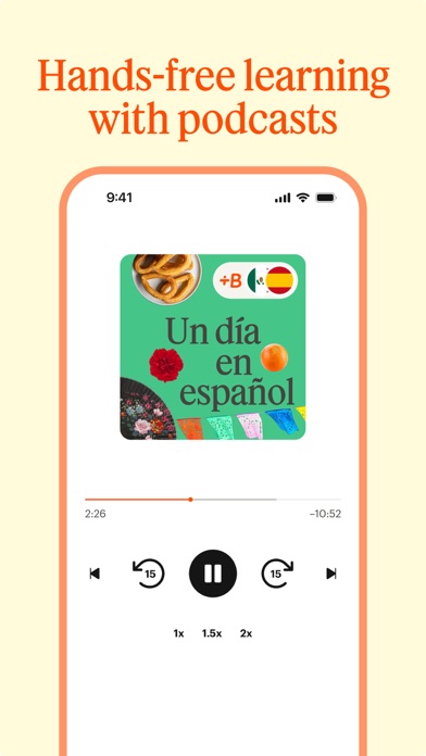 Speak a new language with confidence – get Babbel, the award-winning app built by 200+ language experts and trusted by millions worldwide. Learn a new language faster with bite-sized lessons designed to fit your everyday life. With Babbel’s proven method, you could start having real conversations in as little as 3 weeks. Your language learning adventure starts with a lesson. WHY BABBEL WORKS • Research-proven results Efficacy backed by researchers at Yale University: 100% improved their oral proficiency in 3 months.* • Expert-built courses Courses are created by language experts and tailored to your native language, so you learn naturally and efficiently. • Speak with confidence Improve your pronunciation and rehearse out loud with interactive conversation practice. TRUSTED BY MILLIONS • 25 million subscriptions sold • 1.5 million 5-star ratings (based on App store ratings) • After 10 hours with Babbel, 96% of learners saw better test scores on grammar and vocabulary** BUILT FOR REAL LIFE • Short, effective lessons: Learn in as little as 10 minutes a day • Lessons for every motivation: Learn for travel, work, or fun • Listen, speak, write: Options for every learning style • Stress-free conversation practice: Build confidence with Guided Conversations, then practice freely with Babbel Speak (Beta) • Smart review system: Boosts learning and retention • Grammar in context: Clear explanations exactly when you need them • Offline mode: Download lessons and learn anywhere, anytime • 5,000+ courses: Over 60,000 lessons across all languages LEARN 14 LANGUAGES Spanish (Latin American or Spain), French, Italian, German, Portuguese, English (American or British), Russian, Polish, Turkish, Norwegian, Danish, Swedish, Dutch, and Indonesian. TRY BABBEL TODAY Download Babbel now and take a free lesson. SUBSCRIPTION DETAILS A subscription is required to access full courses for one language. Subscriptions renew automatically unless canceled at least 24 hours before the end of the current period. Payment will be charged to your Apple account. Available plans: • 1 month • 3 months • 6 months • 12 months Privacy policy: https://about.babbel.com/en/privacy/ Terms of use: https://about.babbel.com/en/terms/ LEARN MORE Read Babbel Magazine for tips and insights: https://www.babbel.com/en/magazine Follow us: Instagram: https://www.instagram.com/babbelusa Facebook: https://www.facebook.com/Babbel.usa CONTACT US Questions or feedback? Email: [email protected] *Based on a study conducted with Babbel users learning Spanish. Available at http://bit.ly/BabbelYale. **Based on a study conducted with Babbel users learning Spanish. Available: http://bit.ly/BabbelMSU.