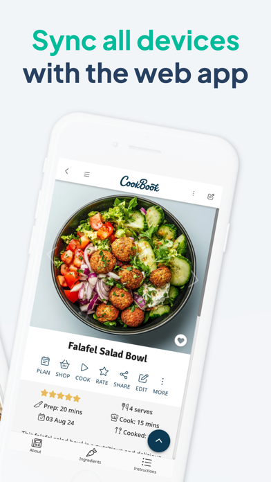 CookBook is the #1 AI recipe organizer and meal planner loved by thousands of home cooks. Keep every recipe, grocery list and meal prep plan in one place. Import recipes from Instagram, TikTok or any website, track macros and order groceries in a tap. Start free with a 14-day trial. IMPORT & CREATE • Import recipes from websites, Instagram, TikTok, Facebook, Pinterest and more • Scan photos of cookbooks or handwritten cards with the AI Recipe Scanner • AI Chef creates new recipes, variations, ingredient swaps, and generates dish images • Import directly from Safari as you browse websites • Safeguard treasured family favorites in your personal CookBook ORGANIZE AND CUSTOMIZE Ingredients in your instructions auto‑link to exact amounts for quick checks • Bulk-edit tags, add tag images and link related dishes • Powerful search by name, ingredients, nutrition, cook time or dietary tags (vegan, keto, gluten‑free) • Pick from custom colour themes and accessibility font sizes MEAL PLANNING AND SHOPPING • Plan your meals for a day, week or month with the built-in grocery planner • Smart shopping list app sorts items by aisle and syncs across devices • Instacart integration lets US and Canadian users order groceries in one tap • Plan ahead to cut food waste and stay on budget NUTRITION AND GOALS • Macro calculator with custom targets and daily totals in the planner COOK WITH CONFIDENCE • Voice guidance with built-in timers and screen wake lock • Effortlessly scale servings and convert units (US, Metric, Imperial, Australian) and temperatures automatically ANYTIME, ANYWHERE • Sync recipes on iPhone, iPad, Mac and the CookBook Web App • Offline access keeps every recipe available without a connection • Sign in with Apple and secure cloud backup EXTRA TOOLS • Duplicate checker, last-cooked date, cook count • Multiple photos per step and video links • Volume-to-weight converter and QR code sharing QUESTIONS OR FEEDBACK? Email [email protected] - we’d love to help! PRICING & TERMS CookBook is free to download. After 20 stored recipes & 20 smart imports you’ll need an active monthly or yearly subscription (yearly includes one 14-day free trial if you have not previously redeemed a trial offer). Payment is charged to your App Store account at confirmation and renews automatically unless cancelled at least 24 hours before the end of the period. Manage or cancel in App Store account settings. Unused portions of a free trial or subscription period are non‑refundable. Terms: https://www.cookbook.company/policies/terms Privacy: https://www.cookbook.company/policies/privacy