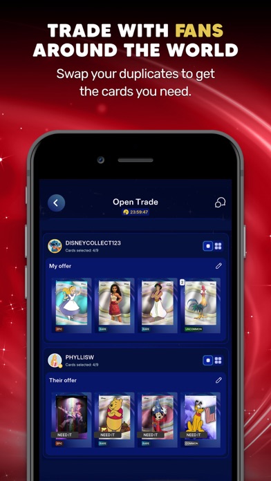 Collect & trade your favorite Disney characters from decades of timeless Disney creations, Disney animations, and Disney storylines in the Disney Collect! by Topps digital collectibles app. Disney Collect! by Topps brings to life the entertaining and delightful collector experience to rip digital collectible packs every day, trade with fans around the world, complete sets to earn rewards and much more. Disney fans can bring their collections to life by combining cards to craft into rarer ones, spinning the Wishcaster to win coins and collectibles, joining events to earn unique content, and entering in-app Challenges for a chance to win Topps Disney hobby boxes, cases, graded cards, and more! Discover a new world of collecting with Disney Collect! by Topps. Disney Collect: Home of the Hobby • Rip packs of new digital collectibles every day • Claim FREE Topps digital collectibles every day • Claim daily coins to boost pack-opening power • Complete sets to earn unique awards • Connect with fellow Disney collectors • Challenges to win physical Topps Disney boxes • Join real-time Disney Watch Party Events Bring your collection to life! • Trade with Disney & Topps fans around the world • Combine Disney cards to craft into rarer ones • Use magic to cast a wish and win cards & coins • Missions to unlock special Disney content Track your Topps collecting adventure! • Progress through thematic Disney Seasons • Collect XP through daily tasks & achievements Customize your Profile! • Showcase your favorite Disney collectibles • Select your Disney character profile avatar MORE INFO: For latest Disney Collect! news: - Twitter @ToppsDisney - Instagram: @ToppsDigital - Facebook: facebook.com/ToppsDigital - Subscribe: play.toppsapps.com/app/disney-collect Collect all your favorites in Disney Collect!: 20,000 Leagues Under The Sea A Bug's Life Adventures of the Gummi Bears Aladdin Alice In Wonderland Artemis Fowl Bambi Beauty and the Beast Big Hero 6 Bolt Brave Brother Bear Cars Cars 2 Cars 3 Chicken Little Chip 'N Dale Chip 'N Dale Rescue Rangers Cinderella Coco Cruella Darkwing Duck Dinosaur Disney Princess Disney's Doug DuckTales Dug Days Dumbo Elemental Encanto Fantasia Finding Dory Finding Nemo Frozen Frozen II Fun and Fancy Free Gargoyles Goof Troop Gravity Falls Hannah Montana Hercules High School Musical Hocus Pocus Home On The Range Incredibles 2 Inside Out Jungle Cruise Kim Possible Lady and the Tramp Lightyear Lilo & Stitch Luca Mary Poppins Mary Poppins Returns Meet The Robinsons Mickey Mouse & Friends Moana Moana 2 Monsters At Work Monsters University Monsters, Inc. Mulan Mufasa Oliver & Company One Hundred and One Dalmatians Onward Peter Pan Phineas & Ferb Pinocchio Pirates of the Caribbean Planes Pocahontas Pooh's Heffalump Movie Ralph Breaks The Internet Ratatouille Raya and the Last Dragon Return To Neverland Robin Hood Sleeping Beauty Snow White and the Seven Dwarfs Soul Strange World TaleSpin Tangled The Adventures of Ichabod and Mr. Toad The Aristocats The Black Cauldron The Black Hole The Emperor's New Groove The Fox and the Hound The Good Dinosaur The Great Mouse Detective The Hunchback of Notre Dame The Incredibles The Jungle Book The Jungle Cruise The Lion King The Little Mermaid The Many Adventures of Winnie The Pooh The Muppets The Nightmare Before Christmas The Princess and the Frog The Rescuers The Rescuers Down Under The Sword in the Stone The Tigger Movie Toy Story Toy Story 2 Toy Story 3 Toy Story 4 Treasure Planet TRON: Legacy Tsum Tsum Turning Red Up WALL·E Winnie The Pooh Wreck-It Ralph Zootopia