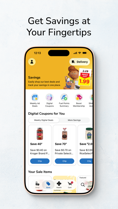 Looking for an easier way to grocery shop, save money and manage your weekly grocery list? The Food4Less app makes grocery shopping simple with Delivery, Pickup and In-store options, digital coupons, weekly ads and personalized savings. Download the Food4Less grocery app to shop groceries online and find the best deals all in one place. Shop Groceries Your Way • Order groceries with Pickup (where available) or Delivery • Scan a recipe to quickly find ingredients and add them to your cart • Shop thousands of additional grocery and household items Save More on Groceries • Browse weekly ads and sales • Clip digital coupons and apply them at checkout • Discover personalized deals, bonus rewards and Cash Back offers • Track and redeem fuel points for gas savings Fast, Convenient Checkout • Use Kroger Pay for fast checkout in-store • Add your Rewards Card Card to Apple Wallet • View purchase history and quickly reorder favorite items Helpful Everyday Tools • Use the store locator to find the nearest Food4Less store or fuel center To use the Food4Less grocery app, create a Food4Less digital account and link your Rewards Card Card. Don't have one? You can create one during registration to start earning savings, rewards and fuel points.