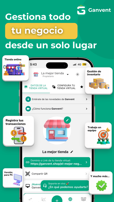 Create your online store or online catalog in less than 1 minute, manage your business inventory and increase your business sales. Sell more in this new year 2026 with your online store More than 100,000 entrepreneurs have already created their online store or catalog with Ganvent's ecommerce platform. ** RECOMMENDED BY ENTREPRENEURS: RATING OF 4.6 OUT OF 5 STARS ** With Ganvent you can have your own online store or virtual products catalog and easily manage the inventory of your business or enterprise. Your online Store in less than a minute! - Welcome to Ganvent, where creating your online store is fast, easy and powerful! In less than 30 seconds, you can have your online store ready to sell. Set up your payment gateway, customize your store effortlessly and receive online orders from anywhere in the world, 24/7. - Customize your online store's color palette - Add banners and offer carousels in your online store - Highlight your best products and categories - Manage your reviews - Link your online store with your social networks Manage your business inventory: - Manage your products with our easy-to-use inventory system. - Classify, organize and control the stock of your products with a single click. - Barcode? No problem, our scanner does the heavy lifting for you. - Add products, categories, subcategories and tags to your inventory - Each product you add can have images, name, tags, category, barcode, purchase price, sale price, stock, notes, details, description, etc. This way your inventory will contain all the necessary information for its management. Manage the finances of your business easily:: - Register incomes, expenses, sales, purchases, debts and credits in an intuitive way. - Send professional receipts and keep accurate track of all your transactions - Export your business transaction data to Excel for in-depth analysis and smart decision making. - Send payment reminders and much more Teamwork and improve the productivity of your business - Add to your team, collaborate in real time and manage roles with ease. - From the owner to the seller, everyone has their place. - And, our 24/7 support ensures that you are never alone on your business journey! Detailed Statistics for the Success of your business: - Visualize the revenues and profits of your store/business in real time. - From the last 7, 180, 365 days and even the date range you want. - Export data for deep analysis and grow your business in a smart way. Contact List: - Create and manage the list of customers and suppliers of your business. - Transaction details, debts and more, all in one place. MultiBusiness and Total Customization: - Manage multiple businesses from a single account. - Choose between dark and light themes according to your style! Download Ganvent Now and Turn Your Idea into a Successful Online Business. Your data is always safe, Ganvent gives you the tools, success is your destiny! Download Ganvent Free and Awaken the Potential of your Online Store today! Terms of Use: https://www.apple.com/legal/internet-services/itunes/dev/stdeula/