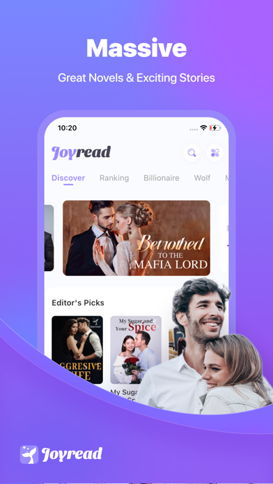 Don't miss the hit novels and captivating stories on JoyRead - your premium reading paradise! Escape into fantastical realms with our extensive Fantasy collection, or indulge in heart-fluttering Romance tales. JoyRead brings the best in storytelling across genres to novel lovers worldwide. Discover unforgettable reading experiences and unlock a world of literary adventures. Download JoyRead now and immerse yourself in extraordinary narratives! Why JoyRead? 1. With abundant hot online novels and shorts, JoyRead is the best choice for you to wander in a world of fiction! 2. You can always find your favorites in our plentiful stories! 3. With personalized reading recommendations & quick updates for new arrivals, you will have a great experience in following ongoing stories~ 4. Your reading journey starts with a simple swipe, in an easy & comfortable way 5. Free stories as many as you want~ Genres JoyRead has all kinds of books loved and embraced by our readers, from Romance with CEOs to Fantasy to Paranormal. We have: 1. Romance 2. Fantasy 3. LGBTQ+ 4. Werewolf & vampire 5. Billionaire 6. Action and Adventure ... Find more interesting and fascinating stories on JoyRead and start your reading journey right now! Top Picks 1. Editor's Picks - our latest hits, which are so excellent that you don't want to miss 2. Ranking - our most popular books/ trending new arrivals. There will away be one which is for your taste 3. Features - stay up-to-date on our hit genres, help you find your dream fictions 4. Selected Genre - genres most favored by our readers, give it a try when you don't know which story to read 5. Trending Tags - Billionaire, Werewolf & Vampire, Alpha, Mafia... Waiting for you to find more! Read With Ease 1. Personalized page-turning setting: sroll, flip or slide the pages as you want 2. Eye-caring mode: personalized background color will never let your read become dull 3. Font size setting: big or small, all at your disposal 4. Reading model: Daytime Mode and Night Mode for you to choose,you can enjoy an easy read at any time 5. Build Your Own Library: enjoy your favorites in your own world JoyRead VIP 1. Coins and Pearls are available everyday 2. Join a VIP group for Exclusive Pearls or Pass card 3. Double free chances for Lucky Draw 4. Special Profile Picture Frame 5. Priceļ¼$9.99/ month,$19.99/ month,$29.99/ month, $49.99/ quarter (three months) 6. The subscription will be made automatically and can be canceled at any time. 7. Privacy policy: https://www.joyreadings.com/privacy_policy_en.html 8. Terms of use: https://www.joyreadings.com/user_agreement_en.html Join JoyRead, more benefits and functions waiting for you in the near future!