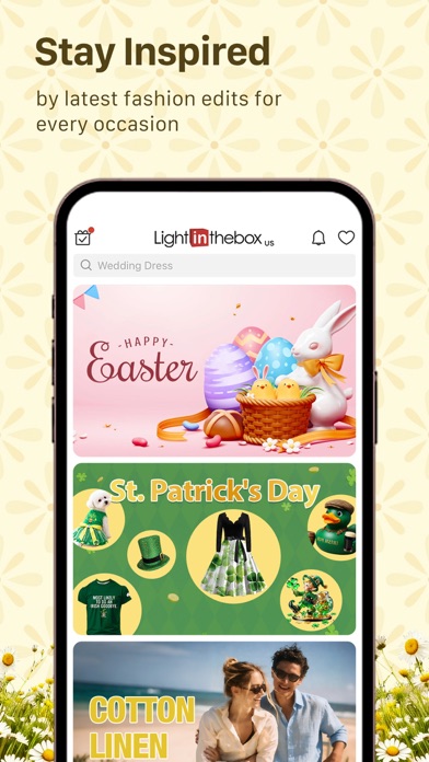 Millions of good fashion, all in one app. As a global fashion shopping station, Lightinthebox brings you affordable and latest trends in style to meet your daily needs. Whether you are looking for ethic vintage style or funny animal prints, gorgeous party looks or comfortable casual basics, you can always find what you want here. From everyday street wears to festive party outfits, we promise you various in-trend fashion choices, to release your beauty and power, and to express yourself confidently. Now Explore today's fashion with Lightinthebox! More Savings: - Daily Flash Sale on sitewide hot items - Check-in to claim massive coupons every day - Gold Member: unlock shipping fees under $4.99 all the time (now in 15 countries, more coming soon!) Extensive Selections: - Find anything you want here, from trendy fashion to home living, tech & much more - Browse & shop easily by Category, Flash Sale, New In, Best Sellers, etc. Better Shopping Experience: - Push updates for real-time tracking, price drops, sale alerts & more - Browse items & deals tailored to your preference - Customize your own appareals & decorations - Get inspired by customer reviews in community - 100% Secure & Easy payments - Shop now, pay later Contact us: URL: https://www.lightinthebox.com Facebook: https://www.facebook.com/lightinthebox Instagram: https://www.instagram.com/lightinthebox YouTube: https://www.youtube.com/c/lightinthebox TikTok: https://www.tiktok.com/@lightintheboxofficial