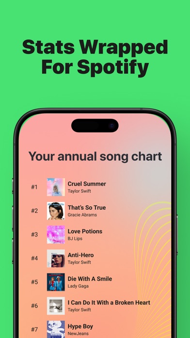 Discover your ultimate music-connected player — play tracks, explore personalized music stats, and uncover your full listening history in one smart app. Perfect for true music lovers, this all-in-one music tracker brings powerful music analytics, real-time music previews, smart playlist generation, and social music sharing — all designed around your listening to music habits. Listening to Music Features Music Player: - Instantly preview 30-second highlights of any music track - Swipe right to save to your favorites, left to skip effortlessly - Discover tracks based on your top music artists and listening behavior Music Recognition: - Identify songs you're hearing with powerful song recognition - One tap to save to favorites or add to your music playlist Music Stats Listening to Music Reports: - Automatically generated music statistics: weekly, monthly, and yearly - Visual breakdowns of your top music stats for songs, genres, and trends Music Match: - Find users who share your music taste - Match based on genre affinity and detailed listening to music habits Advanced Stats tracker: - Total listening to music time, number of plays, and time-of-day activity - Access lifetime stats for any music track, artist, or album - Instantly browse your music play history and recent activity Top Rankings: - View your top music stats for songs, albums, and music artists - Rankings by total minutes, play count, or smart Affinity score Smart Music Playlists: - Instantly generate music playlists from your top tracks - Keep them synced automatically as your music analytics and stats update Music Widget - Become Best Buddies - Browse your friends’ most played and most recent music tracks - React to their tracks, send emojis, and start conversations in the Music widget - Save their songs directly to your own music playlists - Add home screen widgets to track their listening to music habits in real time Designed for Music Stats Lovers Whether you’re into music stats for your tracks, advanced music analytics, or stats-style deep dives — this is your all-in-one music tracker. Experience a music player that goes beyond playback. Relive your "Wrapped" moments anytime, and keep your music journey going all year. Your Music Stats. Your Music Player. Your Story. Download now to discover your true music self, connect with music-loving friends, and experience your listening to music journey like never before. Note: This app will not give you any premium features of the official Spotify client. This application is not developed by or affiliated with Spotify AB. It was developed using the Spotify Web API. Note: If you subscribe through Apple, payment will be charged to your App Store account at confirmation of purchase. Subscription automatically renews unless auto-renew is turned off at least 24 hours before the end of the current period. The account will be charged for renewal at the selected plan rate within 24 hours before the end of the current period. Subscriptions and auto-renewal can be managed after purchase by going to your App Store account settings. Feedback —If you have any suggestions or any problems with the use, please send an email to [email protected]. Privacy policy: https://www.musicstatsforspotify.com/privacy Terms of services: https://www.musicstatsforspotify.com/recoverdeleted_terms.html