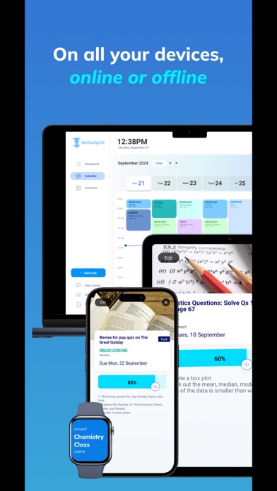 MyStudyLife is the ultimate student planner designed to help you stay organized, reduce stress, and achieve your academic goals. Trusted by millions of high school and university students worldwide, it combines all the tools you need into one simple, powerful app. From homework tracking to exam preparation, from daily schedules to extracurricular planning - MyStudyLife keeps your entire school life in sync, on mobile or web. Why Students Love MyStudyLife: - Smart Class Scheduler - Build your timetable with support for weekly and rotating schedules - Homework Planner - Add assignments, track deadlines, and get reminders before due dates - Exam Tracker & Revision Planning - Plan your study sessions, avoid last-minute cramming, and feel confident on test day - Pomodoro Timer - Stay focused and manage your study time effectively with built-in productivity tools - Weekly & Daily Calendar Views - See your schedule, tasks, and exams at a glance - Advanced Task Management - Organize repeated tasks and subtasks for better productivity - Xtra Planner - Manage clubs, part-time jobs, sports, or other commitments beyond the classroom - Widgets & Dark Mode - Personalize your planner and access it instantly from your home screen - Cross-Device Sync - Switch seamlessly between your phone, tablet, and web browser New! Parent Portal School is easier when everyone is on the same page. With the optional Parent Portal, you can share your classes, tasks, and exams with a parent or guardian. They’ll have the visibility to support you, while you stay fully in charge of your own schedule. No nagging, just meaningful support when you need it. Recognized by Leading Publications "The MyStudyLife app is an excellent study calendar and school assignment organizer." - The New York Times "One of our top organization apps for students." - Forbes "A great study planner app." - Hindustan Times Built for Every Student: MyStudyLife adapts to you, no matter your school level or workload. Whether you’re in high school balancing classes and sports, or at university juggling lectures, labs, and revision, the app is built to make your academic life easier. - Daily & weekly class schedule planner with notifications - Exam calendar with reminders and revision planning tools - Homework tracker with priority and deadline alerts - Repeated tasks and subtasks for managing complex assignments - Pomodoro timer to boost focus and productivity - Xtra planner to manage part-time work, sports practice, and extracurriculars - Customizable calendars and reminders so you never miss what matters most Why Choose MyStudyLife? Unlike a paper planner or basic calendar app, MyStudyLife was designed for students, by students. Every feature solves a real problem in the academic journey: - Stay on top of homework and assignments without the stress of forgetting due dates - Track exams and revision schedules to avoid last-minute panic - Balance academics with extracurriculars, jobs, and personal life in one app - Build stronger study habits with tools like Pomodoro and repeated task planning - Sync across devices so your school calendar is always within reach MyStudyLife doesn’t just keep you organized - it helps you build confidence, stay motivated, and achieve more with less stress. Download MyStudyLife today - the all-in-one student planner to organize your classes, homework, and exams, and take control of your student life. -- Your account will be charged for MyStudyLife+ subscriptions. Subscriptions automatically renew unless canceled at least 24 hours before the end of the current period. Manage your subscription in Account Settings after purchase. Privacy Policy: https://www.mystudylife.com/privacy-policy Terms of Use: https://www.apple.com/legal/internet-services/itunes/dev/stdeula/
