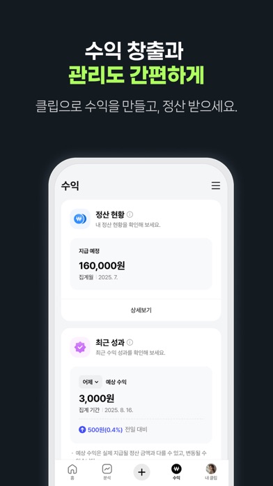 네이버TV 앱이 클립 크리에이터로 새로워집니다! 클립 크리에이터는 창작자가 팬과 함께 성장하고 수익을 내며 즐겁게 창작할 수 있도록 지원합니다. 새로운 영감을 제공하고 창의력을 마음껏 펼칠 수 있도록 창작부터 분석, 수익화까지 필요한 모든 도구를 갖추고 있습니다. [주요 기능] • 홈: 아이디어와 영감을 얻을 수 있도록 도와드립니다. 창작자 프로그램부터 카테고리별 인기 클립, 팔로워가 급증한 창작자, 태그 랭킹 등 트렌드를 둘러 보고 인사이트를 얻어 보세요. • 분석: 클립과 프로필에 대한 사용자 반응을 다양한 지표로 제공합니다. 상세한 분석을 통해 성과를 추적하고, 다음 영상을 계획해 보세요. • 수익: 클립의 성장이 보상으로 이어지도록 클립 광고 인센티브 프로그램을 제공합니다. 수익화 자격 달성 현황을 확인하고, 수익금을 정산 받아 보세요. • 업로드: 동영상과 게시물 형식의 클립을 손쉽게 창작할 수 있습니다. 태그, 스티커, 사운드, 필터 등 다양한 편집기능을 통해 고품질 숏폼 콘텐츠를 만들어 보세요. • MY 프로필: 나의 경험과 관심사가 담긴 클립 콘텐츠, 팔로잉 및 팔로워를 한 곳에서 관리할 수 있습니다. * 클립 크리에이터 앱은 클립 프로필을 만든 창작자를 위한 앱입니다. 앱에서 10초만에 클립 프로필을 만들어 보세요. * 클립 프로필은 클립 창작자를 위한 새로운 공간입니다. 네이버 블로그, 네이버TV 등 흩어져 있던 클립을 더 쉽게 제작∙관리하고, 프로필을 통해 나의 관심사와 개성을 보여줄 수 있어요. * 기존 네이버TV 앱은 네이버TV 웹에서 계속 사용하실 수 있으며, 앞으로도 더 나은 서비스를 위해 노력할 예정입니다. 개발자 연락처: 1588-3820 [email protected] 경기도 성남시 분당구 불정로 6 네이버