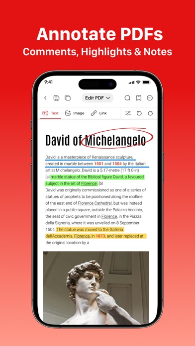 Edit, Read, Scan, Convert, Annotate & Sign Your PDF Documents With A1 PDF EDITOR! A1 PDF EDITOR is your all-in-one PDF converter, reader and editor app. It allows you to view, scan, edit, annotate, convert, draw and sign PDFs, allowing you to handle your important documents in an easy, breezy and safe way! KEY FEATURES: → PDF EDITOR: Edit & Annotate Documents Easily: • Edit PDF, write, annotate and leave comments easily on your doc with our customizable sticky notes and intuitive drawing tools. • Highlight key passages, add text boxes for in-depth comments, and respond to existing annotations. (Apple Pencil support on iPad Pro for enhanced precision). → PDF READER: View & Read PDF Documents: • Received a document you need to view and read? Our app lets you view any type of document which is easy to read with our high quality PDF opener app. → PDF SCANNER: Scan Physical Documents: • Scan your physical documents and convert them into universally readable documents using your phone’s camera. • Our advanced scanning technology ensures your scanned PDFs look professional with automatic perspective correction, color adjustments, and intelligent cropping tools. → PDF CONVERTER: Convert to PDF from different Documents: • Word Document → PDF • Excel Spreadsheets → PDF • Presentations → PDF • Images (JPG, PNG) → PDF • Plain Text (TXT) → PDF → PDF to FILES: Convert PDF to any document easily: • PDF → Word Document • PDF → Excel Spreadsheets • PDF → Presentations → PDF SIGNATURE: Sign Documents Without Hassle: • Fill out your forms and sign without any hassle using your finger or Apple pencil. • Our electronic signature system makes sure your original signatures look just as good and accurate on your PDF documents. → SHARE & EXPORT & COLLABORATE: • Invite colleagues or clients to collaborate by effortlessly sharing PDF files via email, link, or text message. • Set permission levels for recipients, allowing them to view, edit, or sign the PDF document according to your needs. • Print, fax, or convert any doc to PDF - Word, Excel, and PowerPoint formats for maximum flexibility → MORE TOOLS: • Insert Images & Draw Effortlessly • Unleash your creative side by inserting images, editing images and using our multiple PDF tools to draw and beautify your documents. Why Should You Choose A1 PDF EDITOR? • Compatible With All Apple Devices - iPhone (iOS 15.0 or later), iPad (iPadOS 15.0 or later), Mac (macOS 12.0 or later and a Mac with Apple M1 chip or later) • All In One PDF App - No need to download multiple apps to scan, edit, convert, or annotate docs; this one app allows you to do it all effortlessly! • Work Offline - Fluctuating internet? No need to panic! Work offline and the changes will be synced as soon as you are back online :D • Free Premium Trial - Unlock the Full Potential with a Free Trial. Experience all the premium features of A1 PDF EDITOR free for 3 days! Choose a subscription plan that best suits your needs and cancel anytime without obligation. Please note: Subscriptions are charged through your App Store account. Subscriptions automatically renew unless canceled at least 24 hours before the end of the current period. Manage your subscription through your App Store account settings after purchase. What are you waiting for? No need to download multiple PDF apps. Make your life easier with the A1 PDF EDITOR today! Terms of use - https://blog.a1apps.co/terms-of-use-a1-pdf-editor/ Privacy Policy - https://a1office.co/ios-privacy-policy/