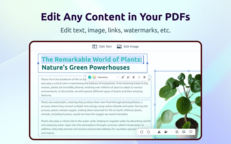 PDF Reader Pro, available on Mac, iPad, and iPhone, will fulfill all your document needs across all platforms. Building on solid features such as AI tool, comment, text and image edit, merge, compress, OCR, convert, redact, sign and protect PDFs, PDF Reader Pro is a full-featured PDF processor. AI FUNCTION ・AI Summarize, AI Translate, AI Proofread, AI Rewrite, AI DeepThink ANNOTATE PDF ・Classic tools - Highlight, underline, strikethrough, freehand, text box, anchored note, shape, etc. ・Sign - Create multiple signatures with trackpad, keyboard or images ・Stamps - Customize your PDF with custom, image, and dynamic stamps ・Link - Add and edit hyperlinks to redirect to website, other pages or email ・Measure PDF - Annotate dimensions within a PDF like distance, perimeters, and areas EDIT PDF ・Edit PDF text and change font size, style, color. Align multiple text boxes with one click ・Edit PDF images. Crop, rotate, flip, replace images ・Watermark - Add, edit or remove watermarks. Support text and image watermark ・Header & Footer - Add, edit or remove header & footer ・Bates number - Identify and retrieve information from your legal documents ・Background - Change the background (color or image) of the PDFs ・Compare PDFs - Compare two versions of a PDF and highlight every change ORGANIZE PAGE ・Split & Combine - Split files into multiple files or combine multiple pages into a new PDF ・Insert - Insert pages from other PDFs, image, blank page, scanner ・Extract - Extract the desired pages to create a new PDF ・Combine PDFs - Merge multiple PDFs into a new one ・Rotate, copy, delete, replace, and crop pages CREATE & FILL FORMS ・Create fillable PDF Forms from interactive field objects, such as buttons, checkboxes, and list boxes. Easily align form objects ・Fill out any PDF forms. Work with static and interactive PDF forms created in Adobe Acrobat PDF CONVERTER PRO · Export from PDF to Word, PPT, Excel, RTF, Text, HTML, Image, CSV, and more · Create PDF from MS Office, image, scanner, web page, camera · Extract images from PDFs DIGITAL SIGNATURE ・Ensure document authenticity and integrity with digital signature. Verify the identity of the signer VIEW PDF ・View PDF in single page, two page, full screen, horizontal or vertical orientation, auto scroll mode ・Support switching to dark mode ・Split view mode to read and compare two different PDFs simultaneously ・Slideshow Mode to present your PDF as PPT ・Create, Edit and Search outlines to easily navigate through the whole file ・Bookmark specific pages of PDFs PRINT & SHARE PDF ・Booklet printing - Put your pages side by side re-sorted for booklet printing ・Poster printing - Poster divides large PDF page(s) into multiple smaller Pages ・Multiple printing - Print more than one page of a PDF on a single sheet of paper ・Share a flatten PDF to make the contents static ・Support uploading files to Dropbox, iCloud Drive, etc. OCR ・Convert scanned PDFs into editable and searchable PDFs or TXT files. 90+ languages supported ・Use area OCR to recognize and extract specific content from a page COMPRESS PDF ・Reduce PDF size for a lighter document ・Customize compression parameters by setting image resolution or discarding redundant items SECURE FILES ・Password protects sensitive documents and authorization to edit, copy, modify or print PDFs ・Redact PDF - Black out sensitive information permanently LISTEN (Text-to-Speech) ・Ever feel tired of reading large files? Try Text-to-Speech(TTS). 50+ languages supported! Terms of Service https://www.pdfreaderpro.com/terms_of_service Privacy Policy https://www.pdfreaderpro.com/privacy-policy Powered by ComPDFKit: https://www.compdf.com/ Contact ComPDFKit: [email protected] Have any feedback, comments? Please contact us directly at [email protected]