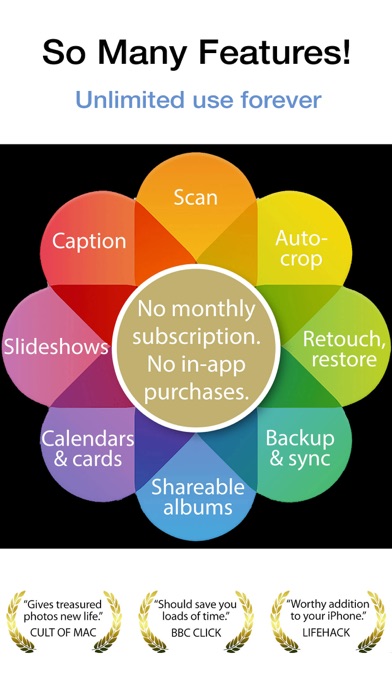 Scan, auto-crop multiple photos per shot. High-tech but so easy to use. High resolution 300 DPI scans. Powerful on-device AI engine for unmatched cropping accuracy and privacy. Unlike other apps, we do all processing locally on your device - never upload your photos to our server. The ORIGINAL: World's first multi-photo scanner app (2013). trusted by hundreds of thousands of happy users, still the best. *** Get high-quality photo scans and much more with this essential app. Launched in 2013 as Pic Scanner, this was world's first multiple-photo scanner app. Since then, we've been constantly updating it with great features like AI-powered auto-cropping and up-scaling. All-inclusive one-time price. No subscriptions, in-app purchases or sign-ups. - Scan multiple photos at a time - 300 DPI scans (All other apps do 72 DPI) - AI-powered, accurate auto-cropping - Automatic enhancement - Automatic upscaling of small-sized photos - Comprehensive suite of editing tools - Add Captions: Dates, descriptions, locations - Edit metadata e.g. EXIF Creation Date - Create albums and slideshows - Make greeting cards and calendars - Export to any device or cloud service - Bulk-export albums as photo folders - Fast, personalized help desk You'll LOVE this painstakingly-crafted app, or your money back. MEDIA PRAISE: - Featured by Cult of Mac, BBC, National Geographic Traveler, Internet Genealogy, iPad Insight, The Guardian and more. HAPPY USERS: ***** Best picture scanner! ***** Love the scan quality ***** Great customer service UNIQUE FEATURES ADD TEXT DESCRIPTIONS & EXIF METADATA - Digitally label photos: Date, place, other details - Exclusive: Imprint captions below photos!! - Save family stories for future generations Very important: Pic Scanner Gold is the only photo scanner app that lets you easily edit photos' creation date (EXIF date), so your photos appear in the correct chronological order in any photo viewer. Also saves description and location in metadata. ENHANCE AND RESTORE - Easy-to-use 25-tool image editor - Improve faded photos AUTO-UPSIZING The app can automatically increase the image resolution of small-sized scans using AI. Up-sizing can be turned off via Settings if you don't need it. SHARE AND ARCHIVE - Sync photos between iPhone, iPad and Mac - Post to social networks and messaging services - Archive in iCloud or ANY free cloud service - Save to Photos app, computer or thumb drive ENJOY THE MEMORIES - Beautiful, quick-create picture albums - Instant slideshows. 200+ greeting cards - Auto-create 'Favorites' album - Shareable albums with captions and music! NO NASTY SURPRISES - No monthly or annual subscriptions - No "extra" in-app purchases - No ads, watermark or personal data tracking - No limit on exporting photos - Photos live in your iPhone/iPad, NOT our server BUY WITH CONFIDENCE Easy-to-use. Does what it says. If you need help, customer service is fast and all-human: No canned replies! WHY THIS APP? FAST AND INEXPENSIVE Faster than using Camera app + manual trimming. Cheaper than scanning services. Total privacy and control. PRESERVES & RENEWS Paper prints fade. Digitizing gives vintage pics a new life, saving your Kodak moments forever. ENABLES SHARING Inherited parents or grandparents' albums? Scan and make copies for the whole family. Our 300 DPI scans are great for making reprints, photo books and scrapbooks. PERFECT FOR GENEALOGY Do genealogy or family history? Use Pic Scanner to preserve your heritage and add notes to pix and family trees. CONVENIENT & PORTABLE No need to remove photos from albums: Scan entire pages. Fading, crumbly pics in a shoe box at old aunt’s? Go on: No WIFI needed. LIKE A TIME MACHINE Take a nostalgia-filled trip down memory lane: Rediscover your analog past and get it into the digital present! *** NOT FOR SCANNING FILM, Kodachrome slides, or converting negatives to positive images.
