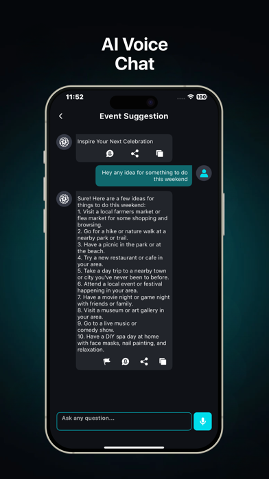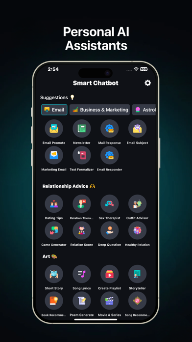 Smart Chatbot: AI Assistant lets you unlock smart conversations anytime. Ask questions, get instant answers, and create unique content effortlessly. Whether learning, planning, or exploring ideas, your AI assistant is always ready to help. Whether you want quick explanations, writing assistance, creative inspiration, or everyday help, Smart Chatbot provides helpful AI-generated responses using voice or text input. Key Features • AI chat assistant with text and voice input • Ask questions and get clear, helpful responses • AI writer for emails, captions, stories, and notes • Generate AI images and creative visuals • Simple logo and visual concept generation • Photo style transformation for creative effects • Multilingual support for global users Smart AI Chat Use Smart Chatbot for studying, writing, brainstorming ideas, or planning tasks. The AI assistant helps explain topics, summarize information, and generate content in a clear and easy way. AI Writing Assistant Create emails, social posts, messages, and creative text quickly. Just enter a prompt and let the AI help you shape your content. Image & Creative Tools Generate images and visual concepts from text prompts, or apply creative styles to photos for fun and inspiration. Multilingual Support Communicate with the AI in multiple languages, making it useful for learning, translation, and everyday conversations. Note: Some features of this app require a paid subscription to unlock. Disclaimer Smart Chatbot – AI Assistant provides general information and creative assistance. AI-generated responses may vary in accuracy and should not be used as a substitute for professional advice. Privacy Policy: http://aichat.miczon.com Terms of Use: http://aichat.miczon.com/termsofuse.html