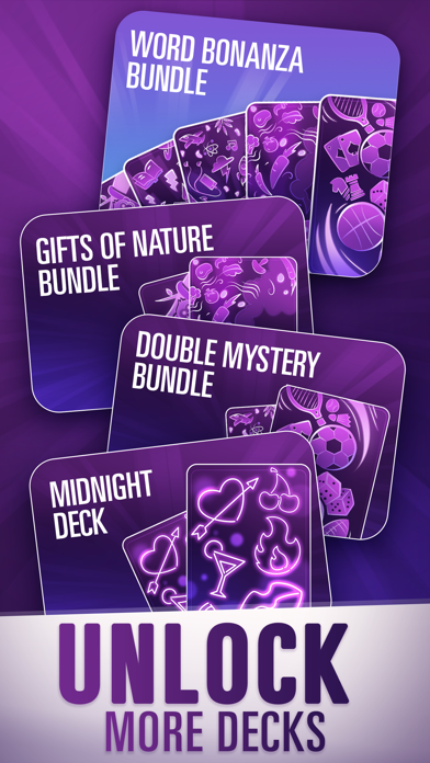 Can you describe an APPLE without using the words RED, FRUIT, PIE, CIDER or CORE? Taboo is the ultimate brain-teasing, word-twisting adult party game. Play with video chat and throw a house party on your phone! Split into two teams and take it in turns to describe the words on the cards. Your team has to guess as many as possible before the timer runs out. If you use a taboo word by mistake, the other team will buzz and you’ll lose a point. Think fast and talk your way to victory! HOW TO PLAY TABOO: 1. Start a game and invite your friends. 2. Split into two teams and name your team. 3. The app chooses a Clue-giver for each team. Each team then takes their turn! 4. The Clue-giver draws a card. The Clue-giver must describe the word without saying any of the words on the card. 5. Team B will buzz if the Clue-giver says a taboo word! 6. Your team must guess as many words as possible before the time runs out. FEATURES - FULLY CUSTOMISABLE – Decide the number of players, rounds, how many turns per round and how many skips are allowed. - AD-FREE GAME – Have fun with zero ads to distract you. - COMPLETE STARTER CARD DECK – Includes cards from the original game. Expand your game further with additional themed decks! - FULLY TRANSLATED – Available in English, French, German, Spanish, Italian, Turkish, Greek, Polish and Hindi. Get the perfect party game on your mobile now!